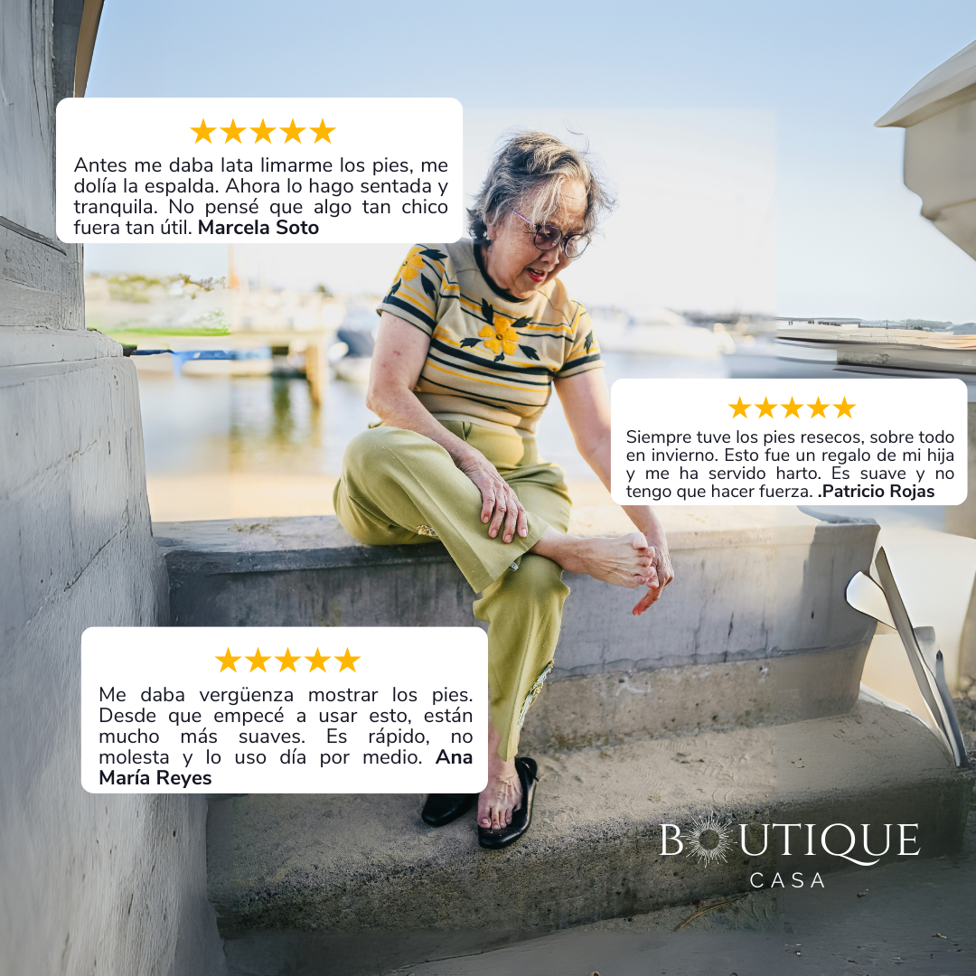 Muchas personas mayores dejan de cuidarse los pies por dolor o incomodidad. Estar agachada o usar limas manuales puede ser difícil o peligroso.